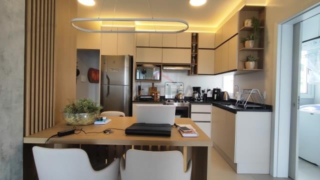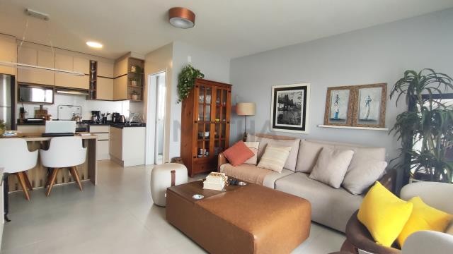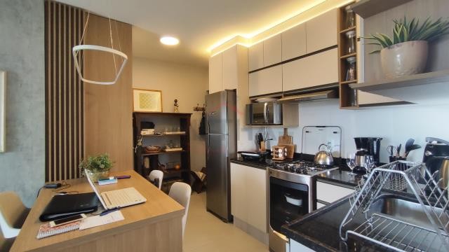 Apartamento com 02 quartos, sala e cozinha, 01 banheiro, churrasqueira, área de serviço e 01 vaga de estacionamento.São 58 m² privativos..
