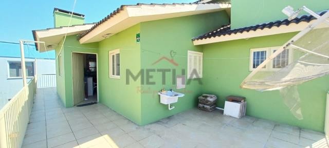 Piso superior com 03 dormitórios sendo 01 com suíte, sala de estar com lareira, sala de jantar, cozinha com churrasqueira, área de serviço, banheiro, sacada em torno de todo apartamento, vaga de estacionamento coberta.