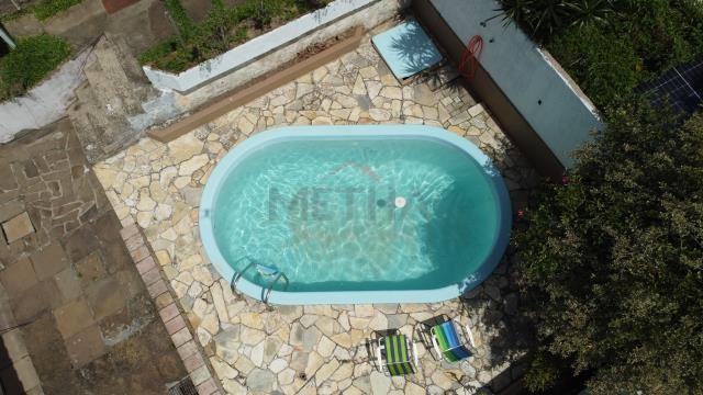 Casa com 4 dormitórios, 2 banheiros, 2 salas, 2 cozinhas e garagem para 4 carros.Possui anexo com lavanderia, churrasqueira e piscina.
