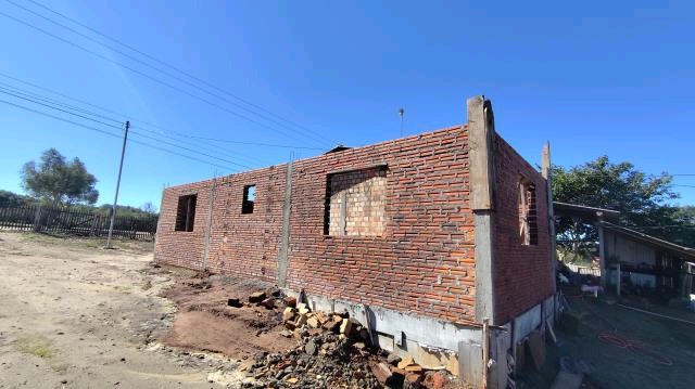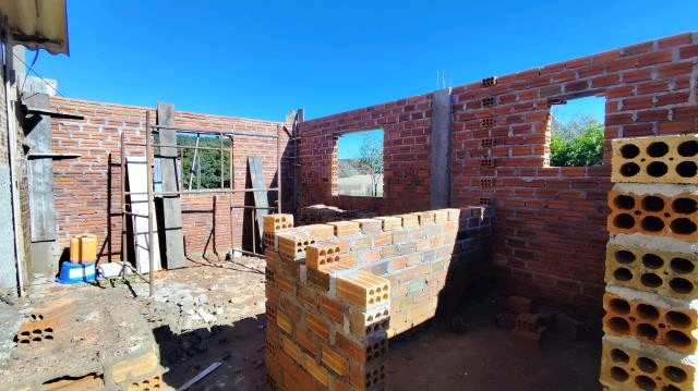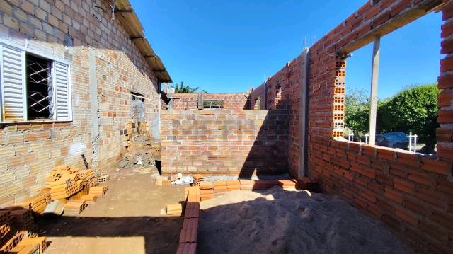 Casa de alvenaria com 05 quartos, sala de estar, sala de jantar, cozinha, 01 banheiro, pátio e 01 galpão.São 99m² privativos, e obra inacabada com 42m² .