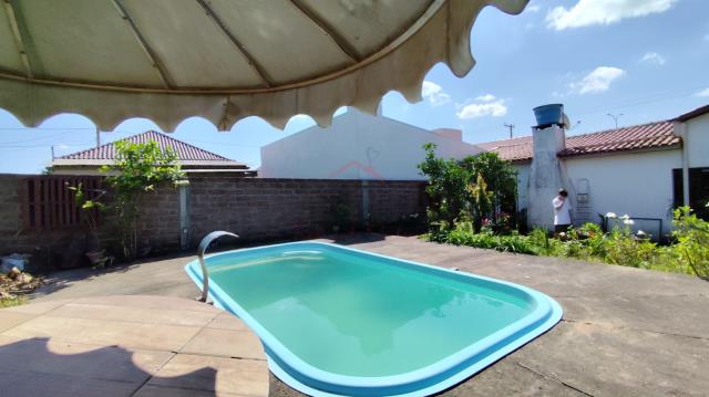 Casa residencial com 4 dormitórios, 2 salas, lareira, 2 banheiros, cozinha, lavanderia, dispensa, garagem com churrasqueira, placa solar, pátio fechado com piscina.Terreno medindo 15m x 34m, 150 m² de área construída.