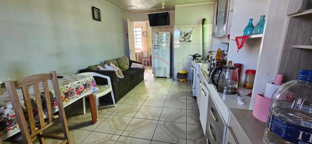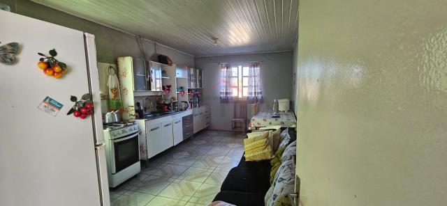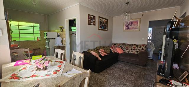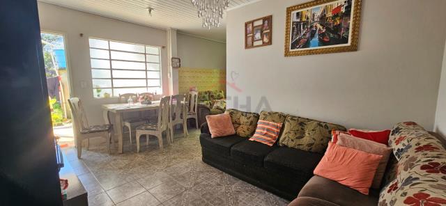 Casa com 3 quartos, 1 banheiro, sala, cozinha com sala de jantar, garagem coberta para 1 carro.São 108m² privativos. E tem mais uma edícula de madeira nos fundos, com quarto, cozinha e banheiro.