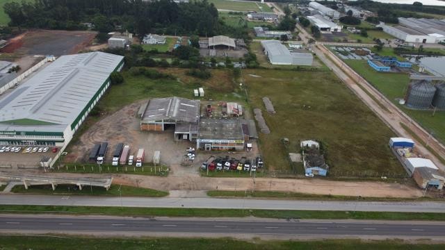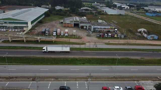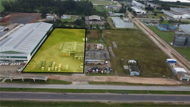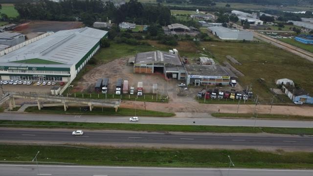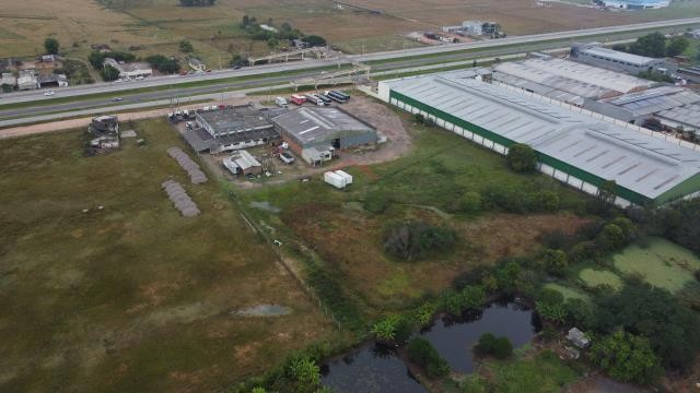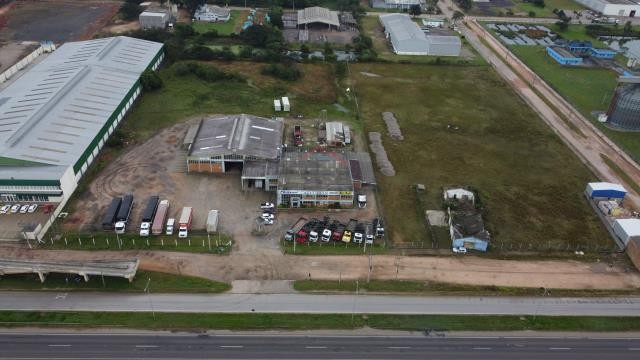 Pavilhão comercial em frente a BR 116, com 1298,82 m², em uma fração de terras de 11.979,56m².Todo cercado, com 2 banheiros, 1 cozinha e um amplo pavilhão.