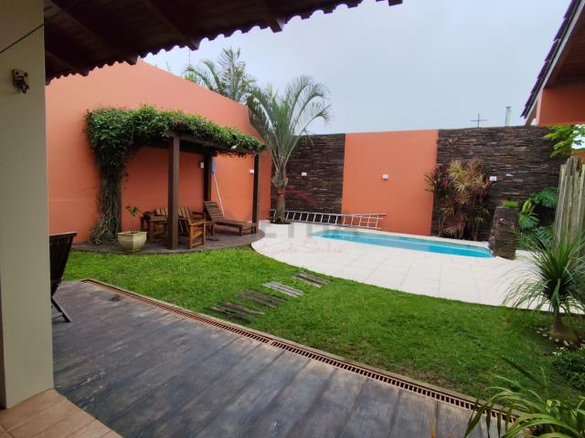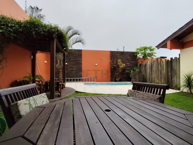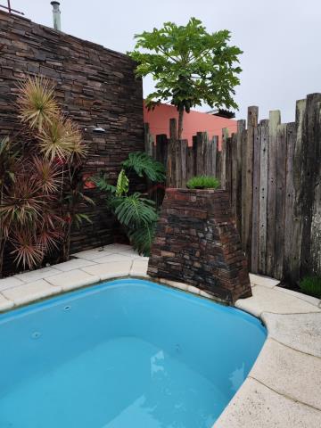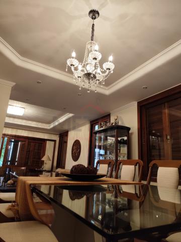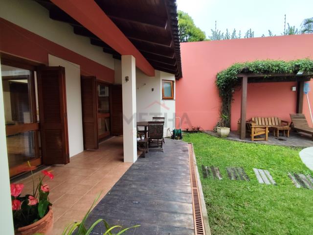 Casa residencial com dois dormitórios (uma suíte com closet e banheira), sala de estar, sala de jantar, quatro banheiros, escritório, garagem para dois carros, dependência de empregada, lavanderia.Imóvel com esquadrias em madeira, lareira, piscina, pergolado, copa, cozinha planejada, anexo com churrasqueira.