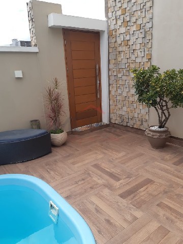 Sobrado com 3 suítes no andar de cima um deles com closet com moveis planejados, piso laminado.No andar de baixo uma garagem para 4 carros com lavabo, pé direito alto ideal para fazer um mezanino, sala dois ambientes toda em porcelanato amadeirado, cozinha com moveis planejados mais uma garagem com espaço gourmet, churrasqueira, armários embutidos lavanderia, academia ou um possível quarto grande, piscina 2 pátios fundos e frente.