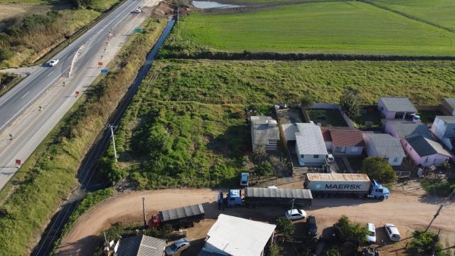 Terreno residencial amplo , medindo 512 m² de área superficial. Pronto para construçãoLote ao lado da Br 116, de esquina com a Margina da BR e Rua Bagé.